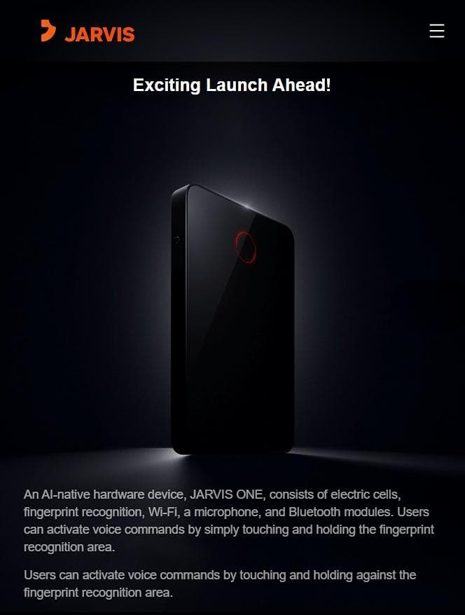 甚至,J1 Assiatant 可能不单单是一款软件。网友从 matter.ai 官网顺藤摸瓜发现,Matter Innovation 公司关联了一个叫 alio-ai.com 的网站,里面有一款疑似 AI 硬件——JARVIS ONE 的信息。