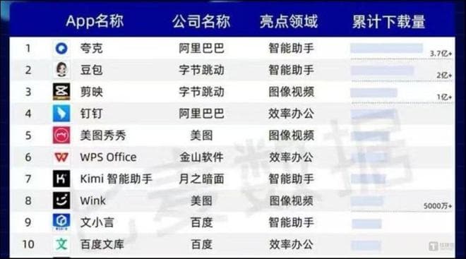 最近,七麦数据发布的《2024年度实力AI产品榜单》显示,夸克位居“年度实力AI产品App榜单”和“年度产品下载榜单”榜首,其2024年度的累计下载量超3.7亿,在各类AI产品中一骑绝尘,实现了断层级领先。