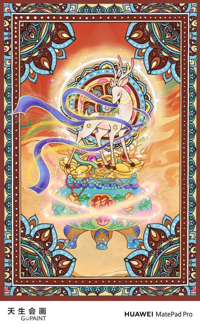 《仙鹿送福》作者康乃馨,由 MatePad Pro 天生会画 App 创作