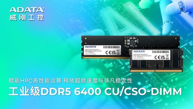 威刚推出工业级 DDR5-6400 CU/CSO-DIMM 内存条,支持宽温范围