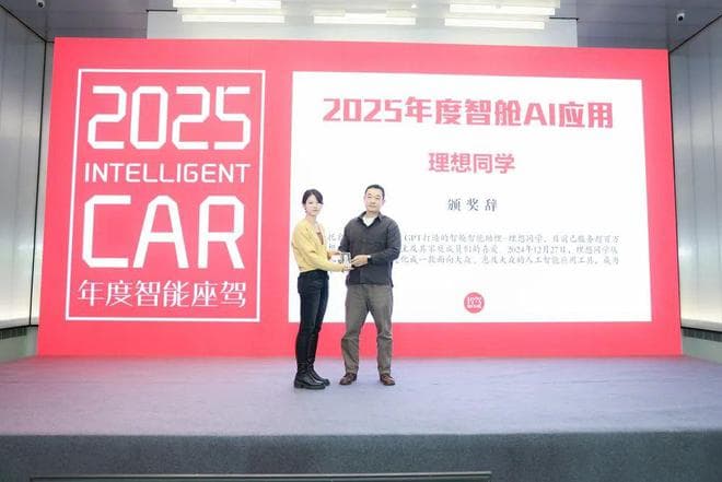 ▲北京智能车联产业创新中心市场总监肖锐为理想AD Max代表赵成龙颁奖