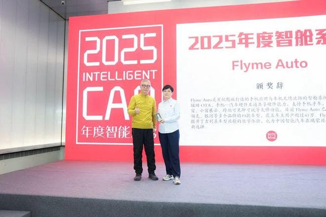 ▲资深媒体人、汽车行业评论员孟冀为Flyme Auto代表苏静文颁奖