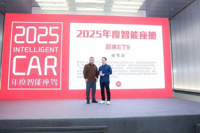 ▲北京广播电视台王延军为蔚来eT9代表张定勇颁奖