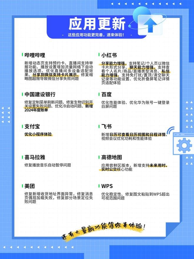 在本周内,还有北京大学、纳米 AI 搜索、360AI 办公、QQ(平板端)等在内的几十余款新应用上架;闲鱼、滴滴车主、小猿口算、QQ 音乐等应用迎来了更新。