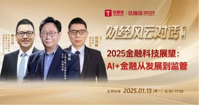 第十二期钛媒体《财经风云对话》,主持人钛媒体副总编辑胡润峰,特邀上海⾦融与发展实验室主任、首席专家曾刚,毕马威金融科技主管合伙人及金融服务业合伙人黄艾舟共同回顾金融科技的2024并展望2025发展趋势。