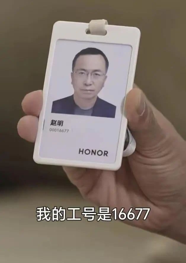 图:赵明称工牌上的照片是在荣耀独立之前拍的,自己的工号是 16677
