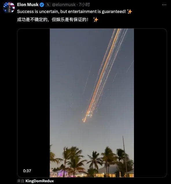就在今天大清早,美国时间当地晚上 8 点, SpaceX 的第 7 发星舰成功起飞,然后在距离地面 145km 的高空,放了一个巨大的烟花,随即化为一次人造流星雨。
