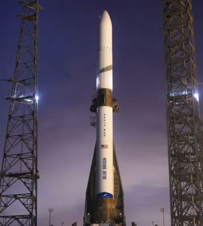 就在星舰起飞前一天,老早就对标 SpaceX 的蓝色起源也发了一个对标猎鹰 9 的火箭,名字叫新格伦。