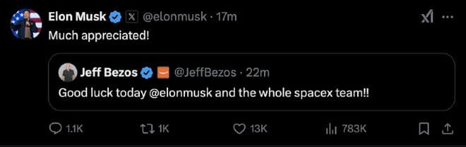 而更搞笑的是,就在发射之前,贝索斯还给马斯克加油打气,想着哥俩的火箭都能一次成功;最后跟星舰一比,这俩货一个炸了头,一个炸了屁股,倒也算是难兄难弟。