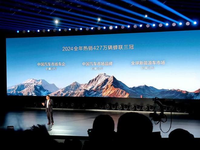 在刚刚过去的2024年,比亚迪以超427万辆的销售成绩,蝉联中国汽车市场车企、中国汽车市场品牌、全球新能源车市场三大销冠,成绩斐然。