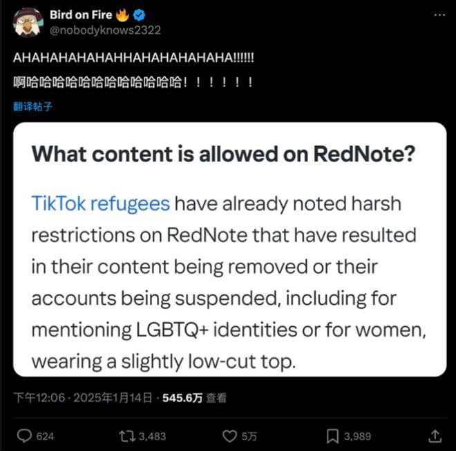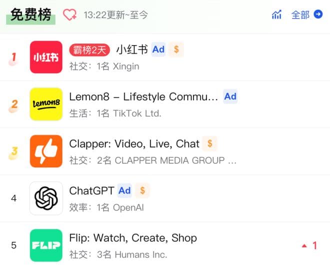 周一,美国网友一身反骨涌入中文社区小红书,小红书最终登顶美国 iOS 总榜“无厘头”开局;
