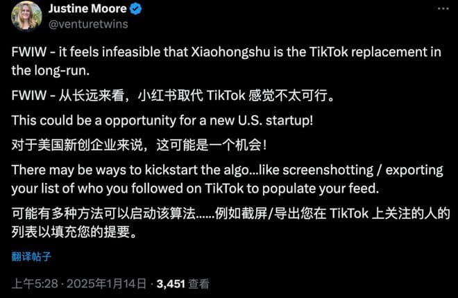 a16z 投资人 Justine Moore 也持有相似的观点,而实际上在聚光灯之外,已有一波美国初创正蓄势待发希望接过 TikTok 的接力棒。