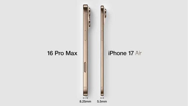消息称 iPhone 17 Air 厚度仅为 5.5mm,比 iPhone 16 薄 30%,比 iPhone 16 Pro 薄 33%,接近 12.9 英寸 iPad Pro(5.1mm)的厚度。