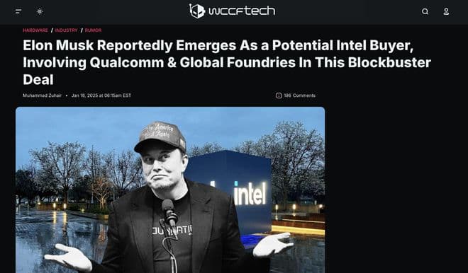近日,据 Wccftech 报道,一则关于马斯克疑似参与收购英特尔的谈判消息被广泛传播。
