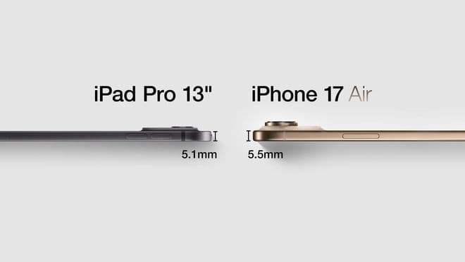 报道称, iPhone 17 Air 厚度仅为 5.5mm,比 iPhone 16 薄 30%,比 iPhone 16 Pro 薄 33%,接近 12.9 英寸 iPad Pro 的 5.1mm 厚度。