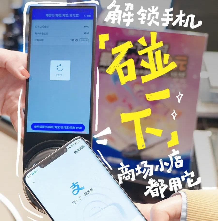所谓“碰一下”,是指用户在解锁手机的前提下,无需展示打开支付宝APP付款码,碰一下商家的收款设备便可完成支付。它规避了刷脸支付过程中的摄像头问题,以硬件感应的方式优化移动支付流程。