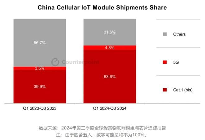 Counterpoint:2024年前三季度 中国市场蜂窝物联网模组出货量同比增长25%