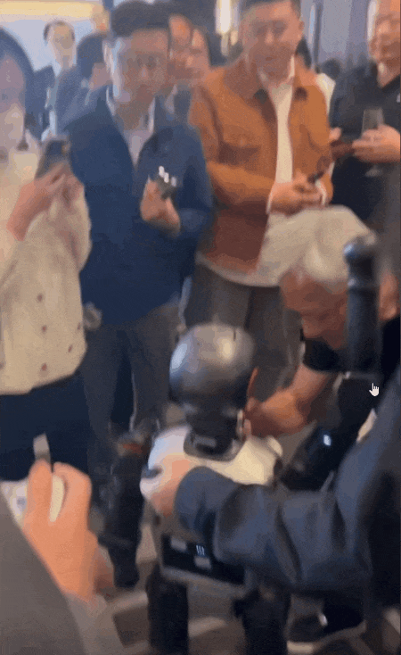 给机器人签名的时候,被胖揍了一拳,然后装作若无其事地继续签名。