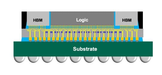 “CoW” 指的是芯片堆叠; “WoS” 指的是将芯片堆叠在基板上,连起来就是把晶元叠起来,然后再封装到基板上的意思。