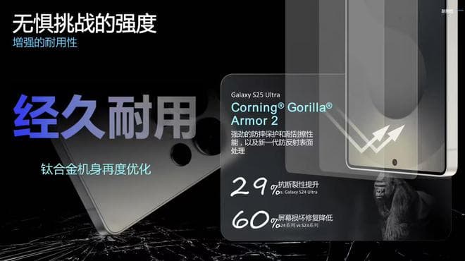 三星 Galaxy S25 Ultra 手机首发康宁 Gorilla Armor 2:更抗摔