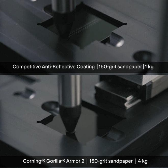 此外,Gorilla® Armor 2 保持了其卓越的抗刮擦性,其抗刮擦性是具有抗反射涂层的竞争性锂铝硅酸盐盖板玻璃的四倍多。
