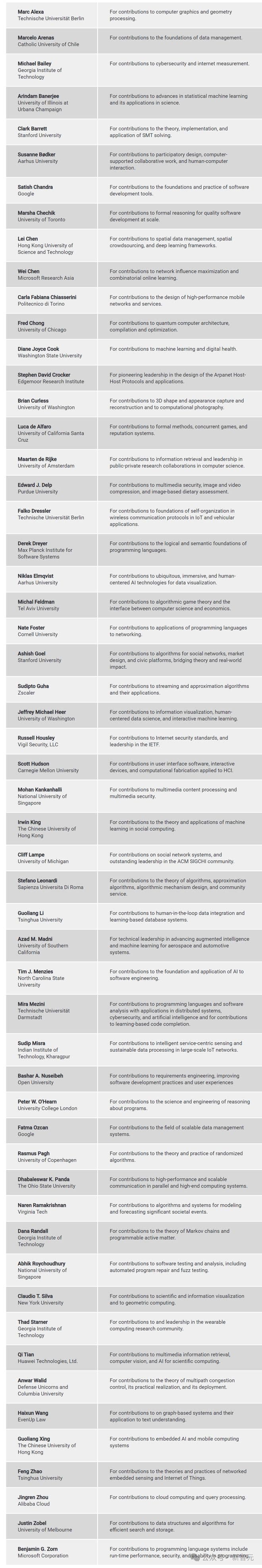 每年公布新一批Fellow名单时,ACM也是在展示计算领域的广泛技术分支。