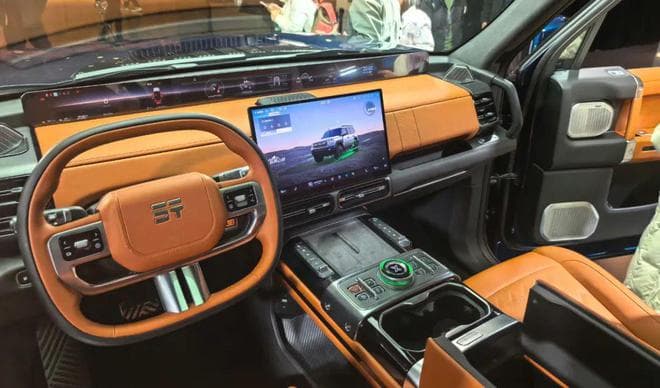 智能座舱方面,纵横采用的是灵感座舱,可以播放3D大片,配备有远端屏、氛围灯、香氛系统等在内的配置。纵横还搭载了支持通风、加热、按摩功能的零重力座椅,这在硬派越野SUV里相当少见。