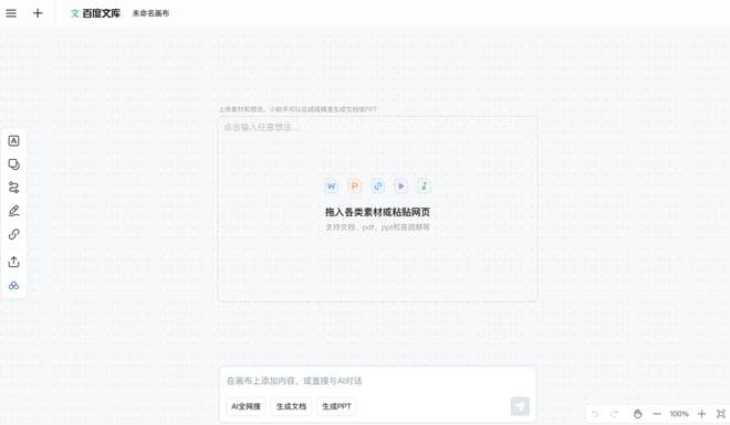 由于自由画布打通了百度文库、百度网盘,公域的百度文库,多年以来积累的大量专业内容,比如研报、论文、文稿、PPT等,也可以很方便地导入到自由画布为我所用,成为一个取之不尽的内容源泉;