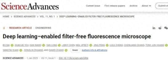 “AI荧光成像——无滤波荧光显微成像技术”在《科学》(Science)子刊《科学进展》(Science Advances)上发表
