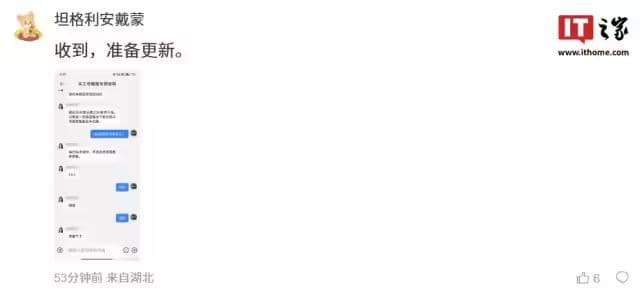 IT之家注意到,在小米王化的微博评论区中,有用户分享了本次 OTA 升级的版本号为 1.4.7。另外截图中的服务管家称“除 OTA 升级外,不涉及任何零配件更换。”