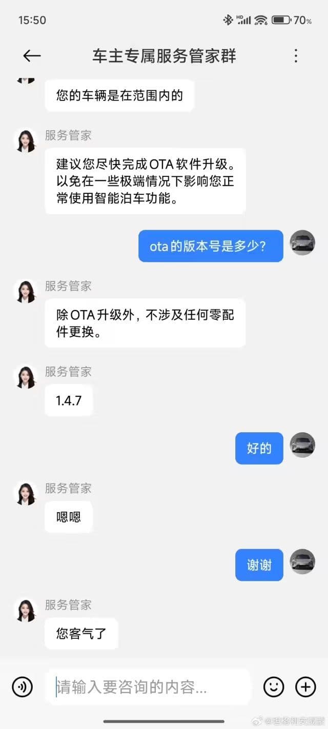 11 月 14 日事情发生后我们第一时间确定了问题原因,为云端服务偶发故障引起的软件授时同步异常,并通过云端服务先实施了有效的防范措施,随后又在智能泊车辅助中加入了更多冗余保护策略措施,已确认排除风险可能。此后,又经过两个月的长时间版本反复测试验证,验证确认安全稳妥。在与主管部门沟通和协商后,本着对用户认真负责的态度,主动发起了本次 OTA 软件升级召回。