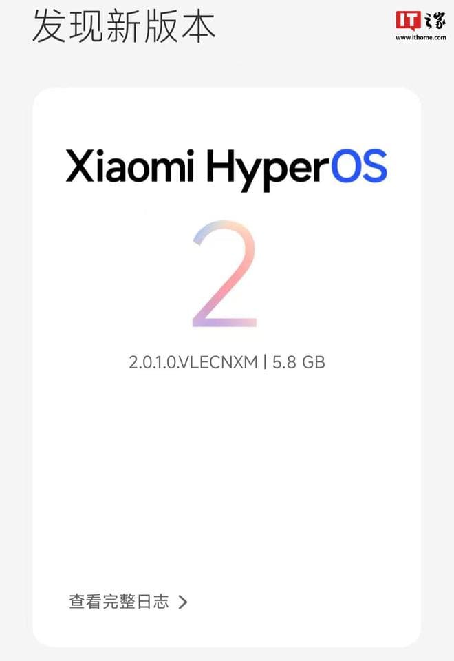据IT之家此前报道,小米澎湃 OS 2 发布于去年 10 月。新增全新艺术锁屏、全场景动效升级、Xiaomi HyperCore、人车家全生态联动升级、跨生态互联、多种 AI 功能等。