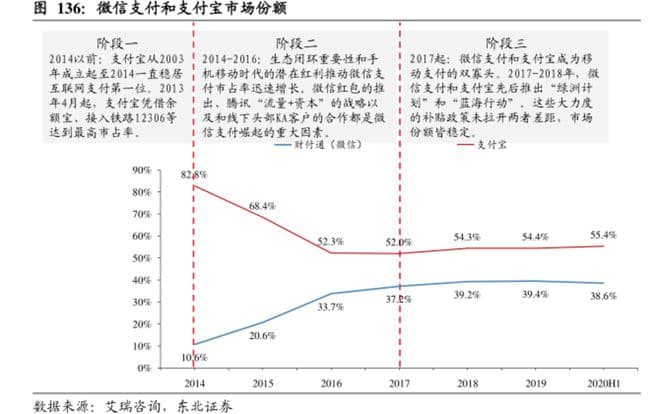 当前,线下支付是微信支付的优势场景,不少门店接受询问时反馈,消费者在店内使用微信支付的交易量甚至达到了支付宝的两倍。线上支付传统上是支付宝的优势所在,毕竟背靠阿里系众多电商平台。但去年这个场景发生了重大变化。