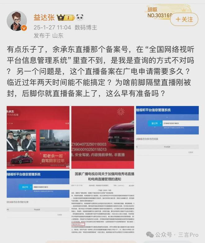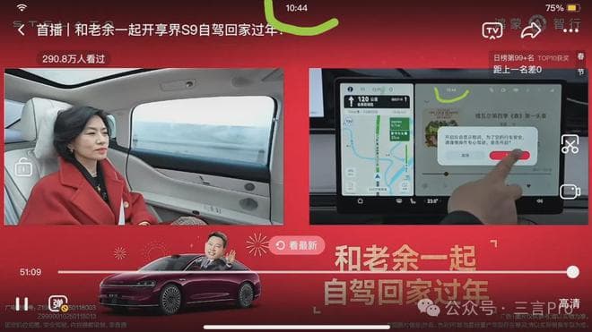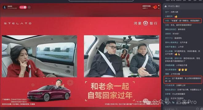 今天上午,余承东直播如约开启,但是三言Pro发现,直播画面备注了广电备案号、“固定机位拍摄,内容提前录制,安全驾驶,非直播”。