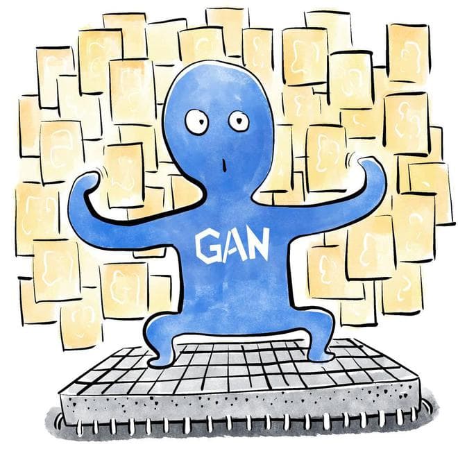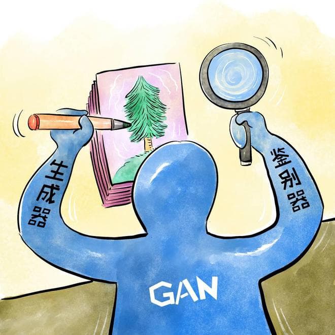 AI 生成图像的背后,有一项非常重要的技术——GAN。GAN 是 Generative Adversarial Networks 的首字母缩写,意思是生成式对抗网络。它是 2014 年,伊恩·古德菲洛和他的同事一起提出的。GAN 听起来很高大上,但它的原理其实非常好理解。