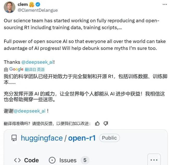 与此同时,围绕 DeepSeek-R1 的各路消息也正层出不穷 ——Hugging Face 等组织正在尝试复现 R1、DeepSeek 之前接受的采访被翻译成了英文版并正在 AI 社区引发热议、开发了 Llama 系列模型的 Meta 似乎陷入了焦虑之中…… 下面我们就来简单盘点一下最近两天围绕 DeepSeek 的几个热点议题。