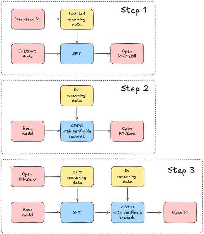 在复现 R1 的各式项目中,最受人关注的当属 Hugging Face 的 Open R1 项目。
