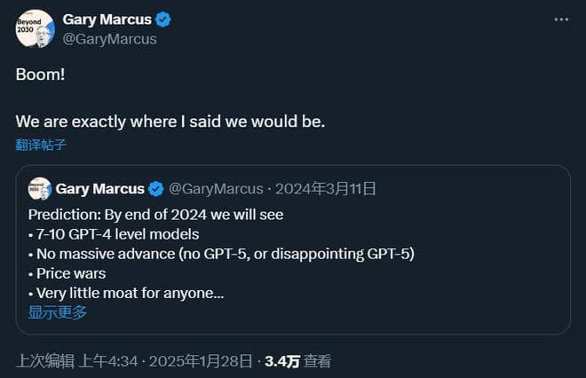 深度求索成功后,马库斯回应 推文截图