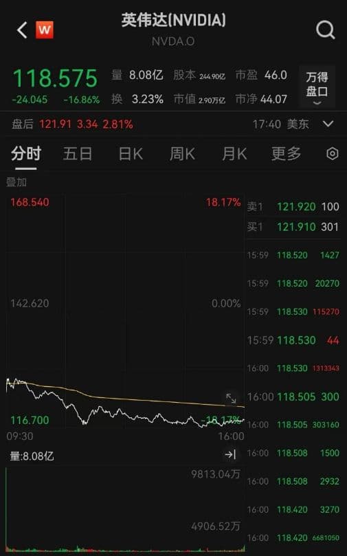 英伟达市值蒸发5000多亿美元 图片来源:中国证券报