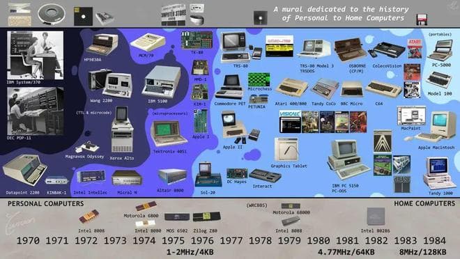 以计算设备的发展为例,纵向扩展下,电脑从占据一整个房间的 ENIAC,演进到晶体管计算器,到可以放在办公桌上的集成电路计算机、再到沿用至今的微型处理器。但性能更强的桌面电脑,普及率和数量都不如横向扩展后的智能手机。