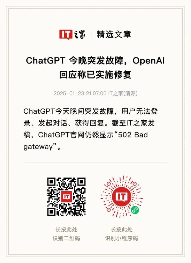 要知道,即便是 ChatGPT,也经常出现宿机事件,这方面也希望大家可以“理解万岁”。