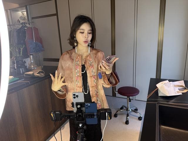 2025年1月10日,某平台主播直播展示新中式服饰。新华网发(洪吉 摄)