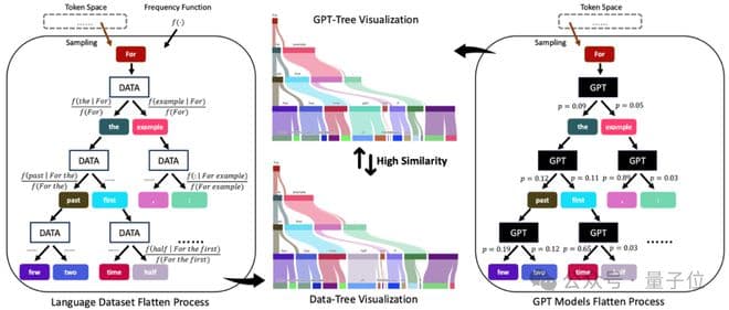 北大课题组的研究人员,发现了一个分析问题的新视角,将语言数据集和GPT模型展开为蒙特卡洛语言树。