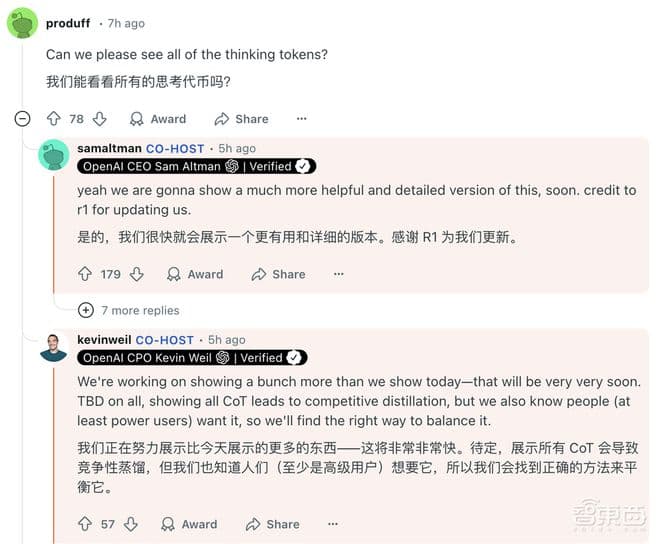 阿尔特曼和OpenAI首席研究官Mark Chen、OpenAI首席产品官Kevin Weil等现身Reddit,在回复用户问题时多次提到DeepSeek,并且剧透了OpenAI的新研究进展。