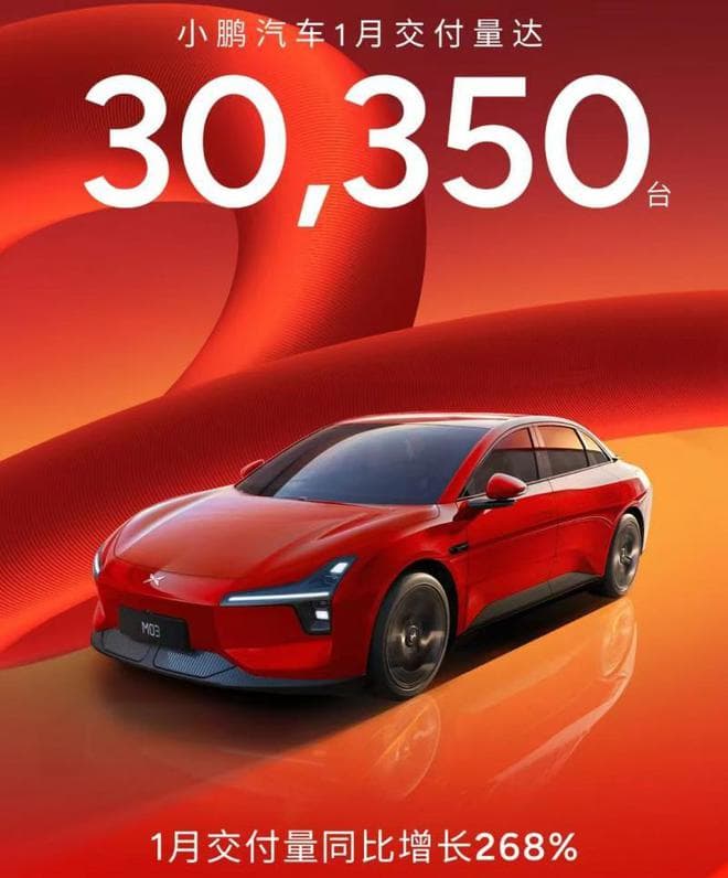 2月1日,小鹏汽车公布最新交付成绩。2025年1月,小鹏汽车共交付新车30350台,同比增长268%,喜迎交付量开门红。