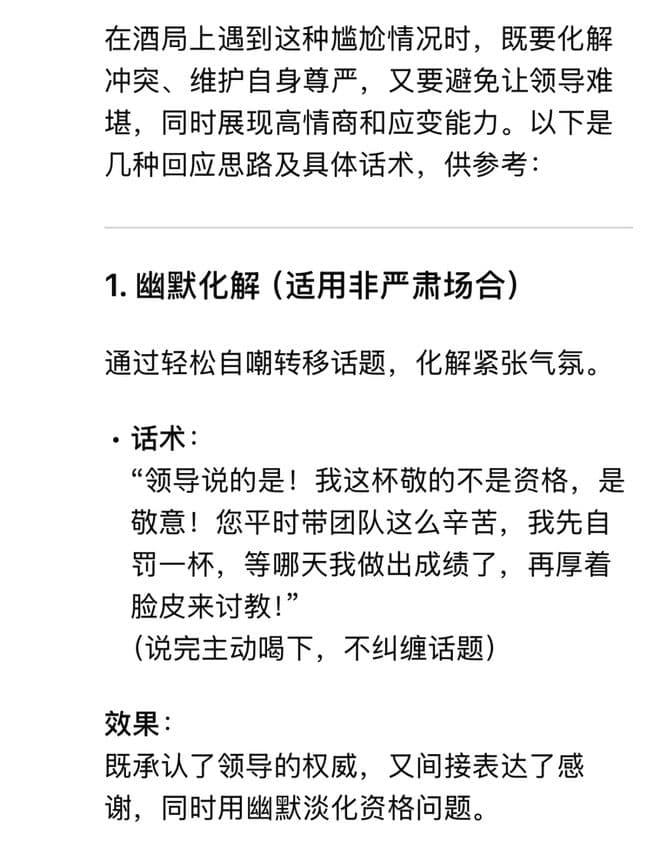 DeepSeek给出话术和思路,没有20年山东酒局试炼,估计都不能那么从容和高效。