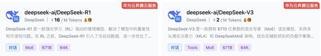显然,这次最令人兴奋的是,这是一个与华为云合作推出的,基于昇腾云的DeepSeek R1&V3推理服务。