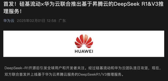 DeepSeekR1使用英伟达H800 GPU 进行训练,此前有分析师Alexander Doria推测,DeepSeek在推理阶段主要依赖华为自研的Ascend AI加速器,以降低成本并减少对西方硬件的依赖,这次也算是某种程度上的“官宣”了。