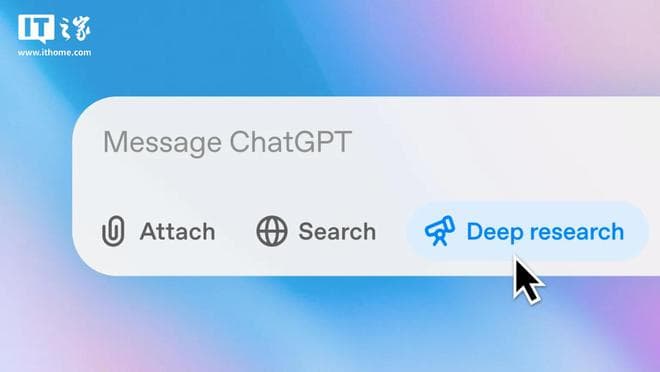 IT之家注意到,与 ChatGPT 传统的快速回答不同,“深度研究”功能适用于需要从多个网站和来源综合信息的场景。用户只需在 ChatGPT 的输入框中选择“深度研究”模式并输入问题,还可以附加文件或电子表格。目前,该功能仅支持网页端,移动端和桌面应用的集成预计将在本月晚些时候推出。每次查询可能需要 5 到 30 分钟的时间,完成后用户将收到通知。