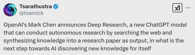 OpenAI 的 Deep Research 通过搜索网络并将知识综合成研究论文,这种自主研究标志着 AI 进入到了自我发现新知识的下一步。